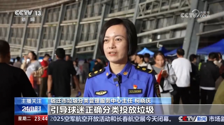 9月23日,中央廣播電視總臺(tái)《24小時(shí)》欄目關(guān)注我市在舉辦“蘇超”等體育賽事中的綠色創(chuàng)新實(shí)踐,“人走場(chǎng)凈”讓綠色低碳理念落地見效。