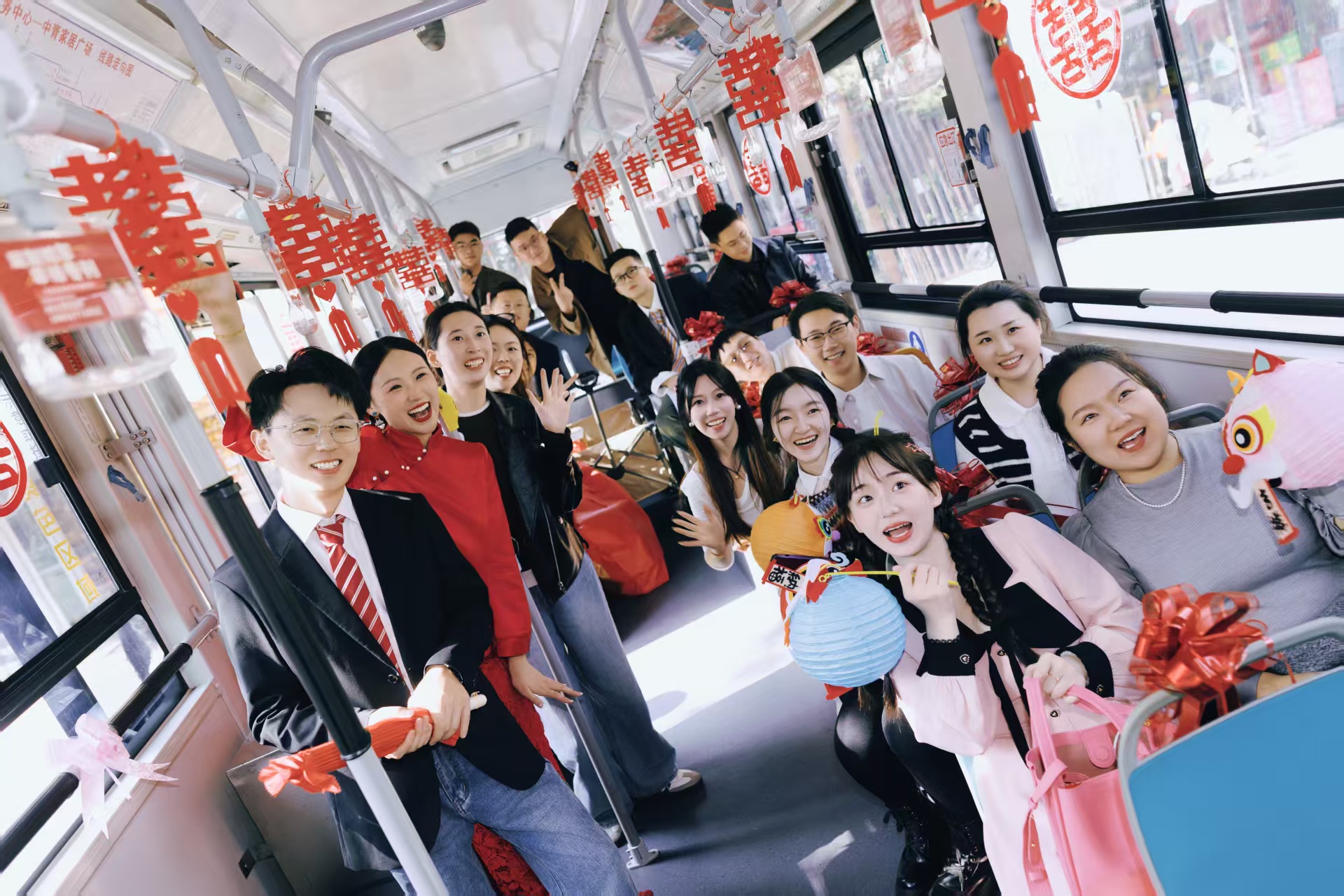 公交婚車的走俏,離不開背后完善的服務支撐與精準的政策引導。為滿足新人的個性化需求,公交公司專門推出定制服務:新人可根據賓客數量靈活選擇“酒都小巴”或公交大巴,還能自主設計車內裝飾、規劃專屬接親路線,串聯起城市里的愛情地標,打造獨屬于自己的婚禮記憶。公司相關負責人表示:“今年,已有近50對新人選用新能源公交車作為婚車,公交婚車已然成為宿遷年輕人的婚嫁新時尚。”這股文明新風尚,正持續升溫。