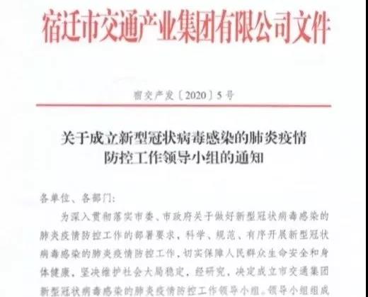 新型冠狀病毒來勢洶洶,牽動著全社會的神經。為加強新型冠狀病毒感染的肺炎疫情防控,宿遷交通集團把保安全、保暢通、控疫情、強服務作為當前工作的重中之重,第一時間行動,迅速采取措施,全力做好疫情防控和平安春運工作。