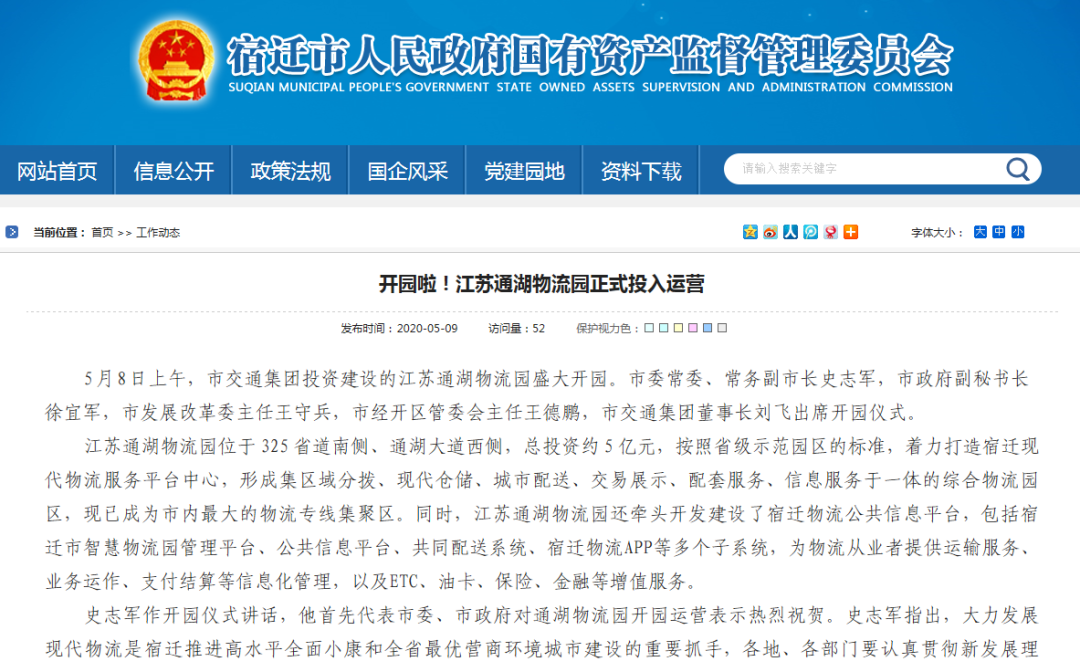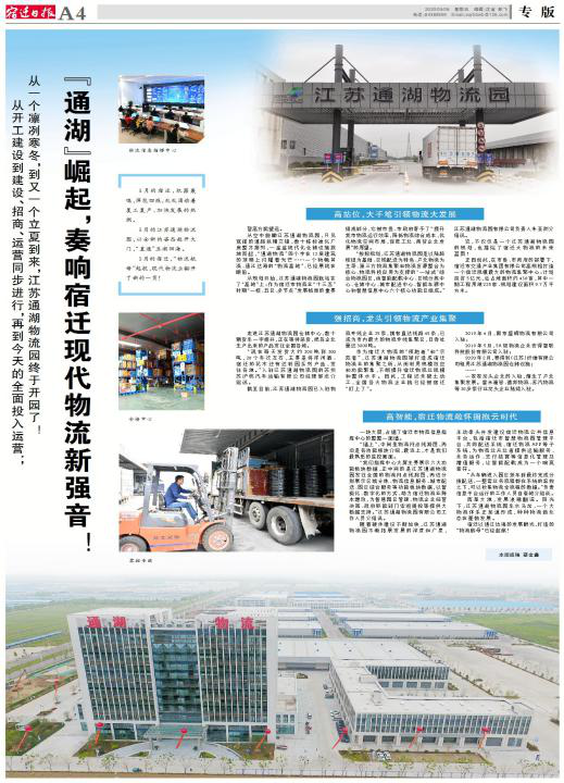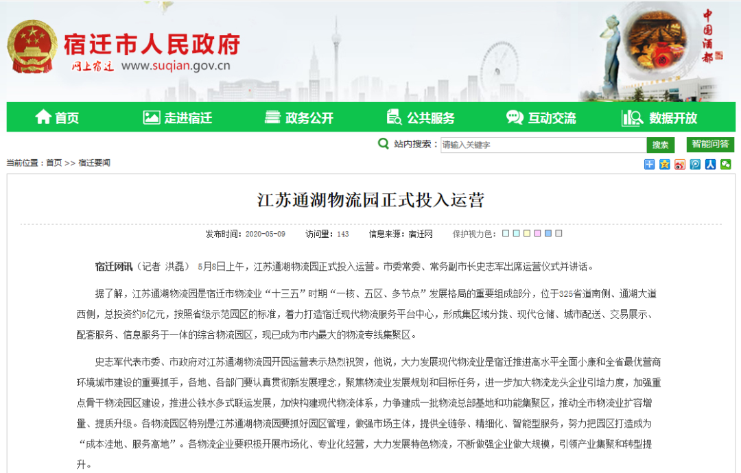 近日,《宿遷日報》《宿遷新聞》《政務時空》等市級主流媒體、網上宿遷等政務網站、宿遷論壇等自媒體以及羅戈網、中國智慧物流平臺等物流行業媒體紛紛聚焦江蘇通湖物流園開園運營。