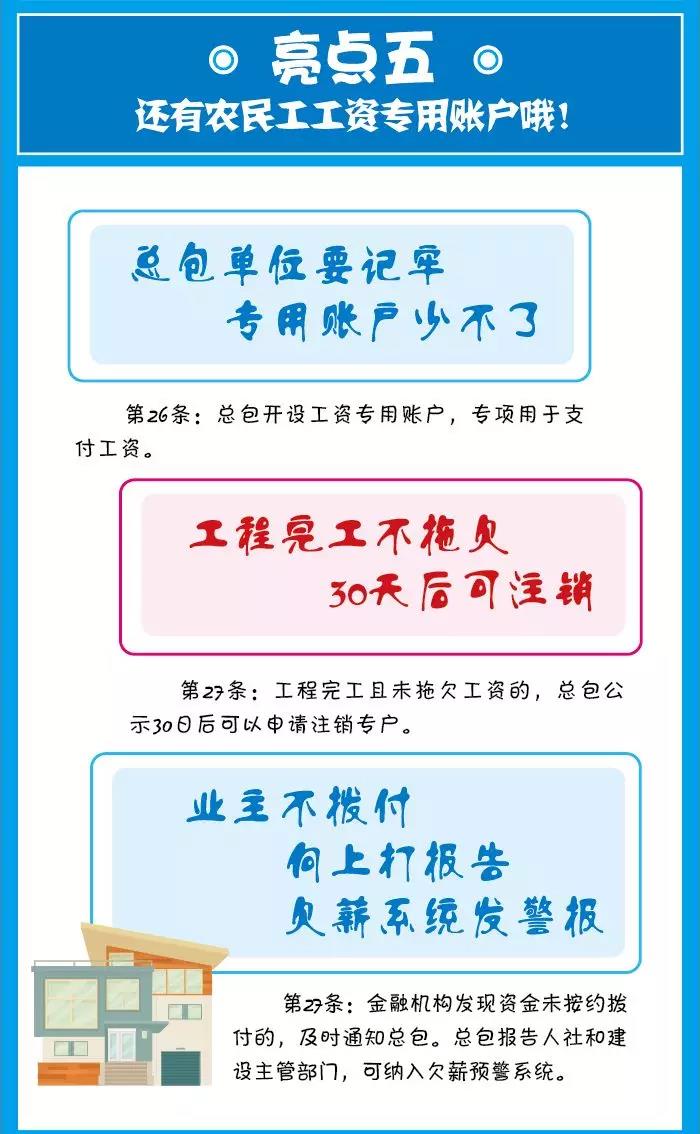 上述條款明確來總包設立農民工工資專用賬戶的義務,專門用于支付農民工工資,建設單位應按照合同約定及時向該賬戶內撥付工資,如建設單位未及時撥付,總包單位可向人社和建設主管部門進行匯報,將建設單位納入欠薪預警系統。