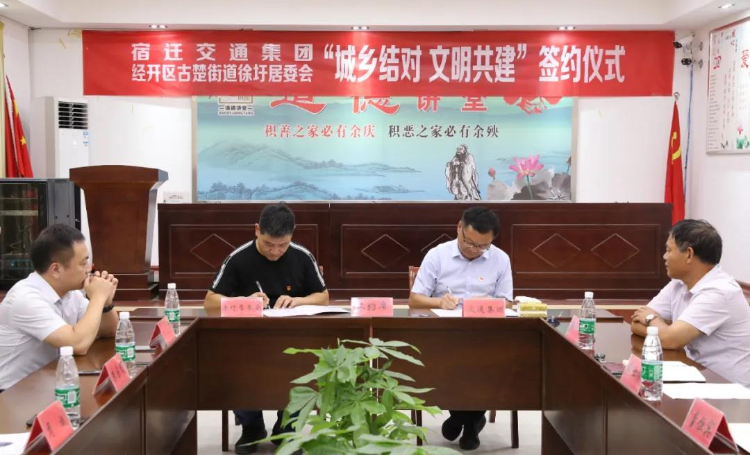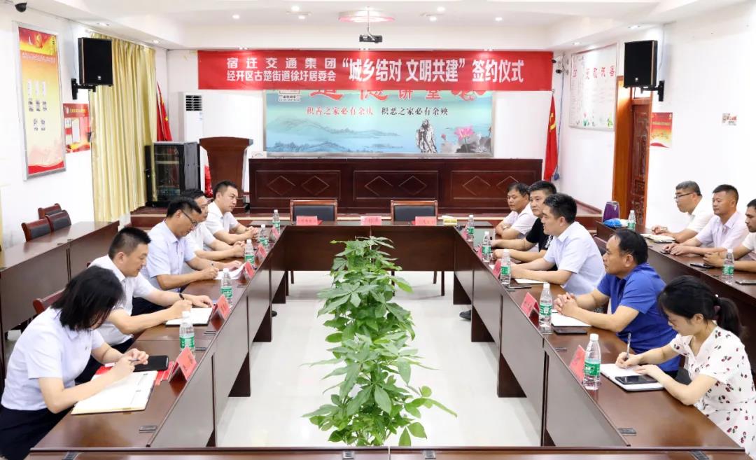 為充分發揮“江蘇省文明單位”的示范帶動作用,積極履行國有企業社會責任,助力宿遷城鄉文明一體化建設,8月27日上午,宿遷交通集團黨委副書記周斌一行來到宿遷經濟技術開發區古楚街道徐圩居委會,就“城鄉結對、文明共建”活動進行座談交流,并與徐圩居委會簽訂了為期3年的結對共建協議。古楚街道黨委書記董恒賓,徐圩居委會黨總支書記、居委會主任臧士振等領導參加活動。