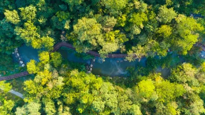 12. 7平方公里的公園內(nèi),樹木古樸蔥蘢,蓬勃參天,森林覆蓋率達到98%,負(fù)氧離子含量高達2萬每立方厘米,遠超一般的公園和城區(qū)。獨一無二的“衲田花海”,總面積2220畝,由612塊花田“ 縫補”拼接而成,融合了北方旱梯田的雄渾和南方水梯田的俊秀,與僧人袈裟異曲同工,兼具納祥聚福之意,樸質(zhì)熠熠生輝。