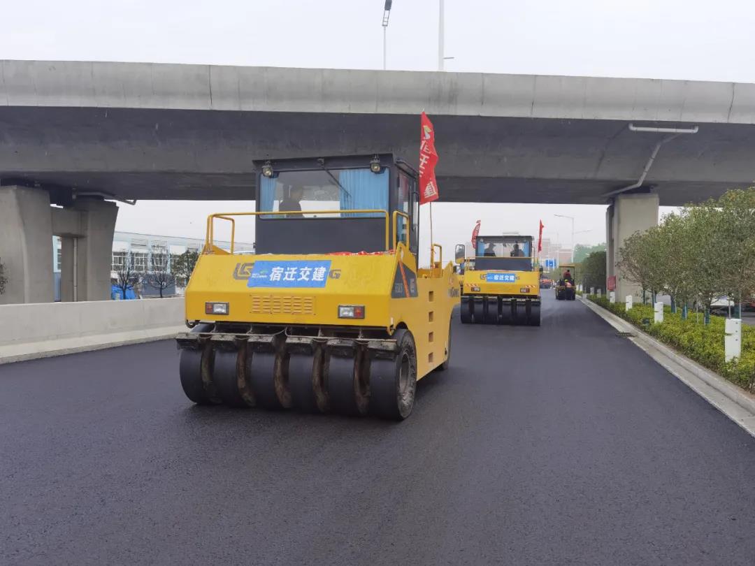 在上海路(高鐵站連接線)改造二期工程施工現場,建設者們堅守崗位,加班加點,全力推進工程進度。據了解,該項目為宿豫區、市洋河新區及宿遷東部連接徐宿淮鹽高鐵宿遷站的主要快速通道。目前,已完成橋梁及道路主體工程,正在進行剩余瀝青面層攤鋪與交安、監控和照明桿件安裝;側分帶喬木、小苗種植90%,計劃2021年6月份完成全部工程。