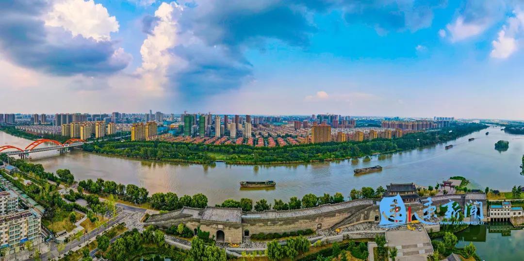 水天一色的洪澤湖、碧波蕩漾的駱馬湖南北相望,宛如璀璨奪目的明珠;綿延流淌的大運河、水光瀲滟的古黃河穿境而過,好似飄逸靈動的玉帶。這里江河湖泊交錯、溝渠溪流縈繞,一城青綠半城湖,四分之一的水域面積,造就了城水相依、人水相親的水韻名城。