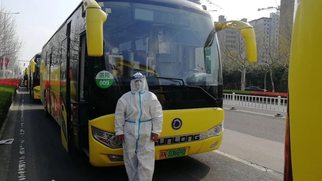 4月2日晚10點30分,公交公司20輛定制公交整齊地停放在宿遷澤達職業技術學院南側待命。為了迅速行動,20多名駕駛員堅守一線、枕戈待旦,連夜值守、和衣而眠,直至4月4日下午2點35分接到指令后方才撤離。