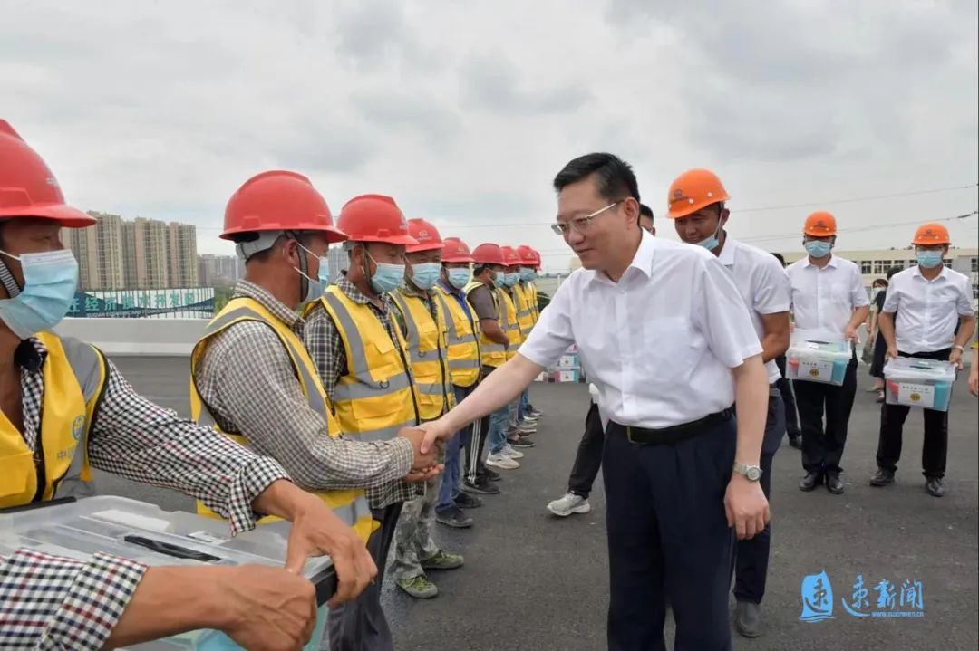 7月7日,市委副書記、統(tǒng)戰(zhàn)部部長杭海至北京路快速化改造工程建設(shè)現(xiàn)場(chǎng),開展夏季安康“三送”活動(dòng),慰問一線工作者。市人大常委會(huì)副主任、市總工會(huì)主席徐勤忠參加慰問。市政協(xié)副主席、宿遷交通集團(tuán)總經(jīng)理史明霞,集團(tuán)黨委書記、副董事長邵巖等陪同慰問。