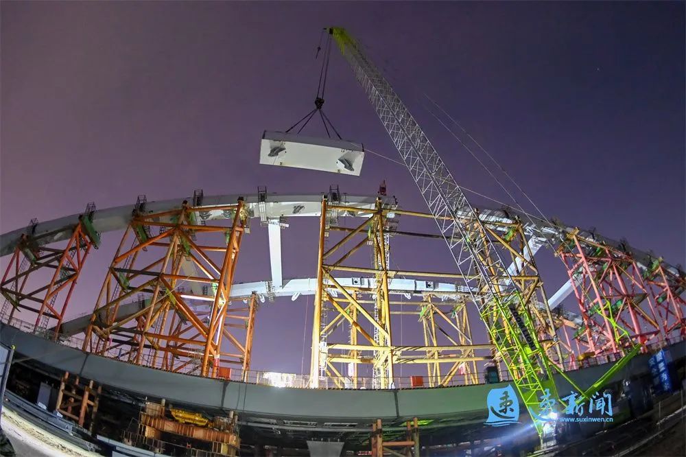 ??????? 7月4號(hào)凌晨3點(diǎn),北京路跨京杭大運(yùn)河特大橋拱肋順利合龍。