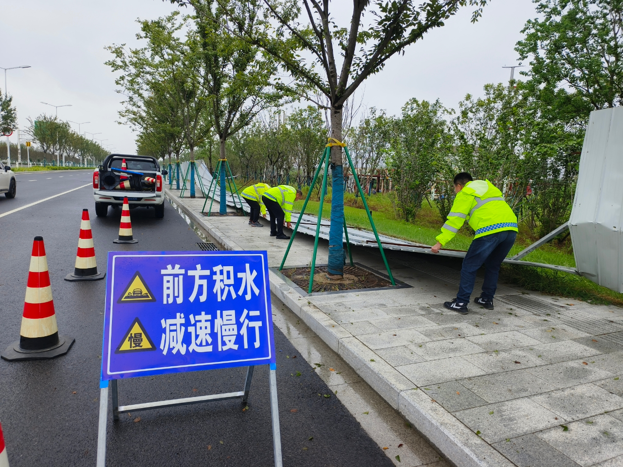 宿遷交建迅速成立應(yīng)急搶險搶通小組,嚴(yán)格執(zhí)行24小時值班制和領(lǐng)導(dǎo)帶班制度,加強突發(fā)情況、突發(fā)事件信息采集、報送工作。工作人員深入一線加大對道路邊溝、橋梁橋下空間、排水系統(tǒng)、泵房設(shè)施等巡查力度,確保各路段排水設(shè)施和應(yīng)急供電設(shè)施正常運行。同時對橋梁涵洞、路面低洼、地下通道等重點部位的安全警示標(biāo)志、標(biāo)牌、夜間信號指示燈進(jìn)行擺放加固。