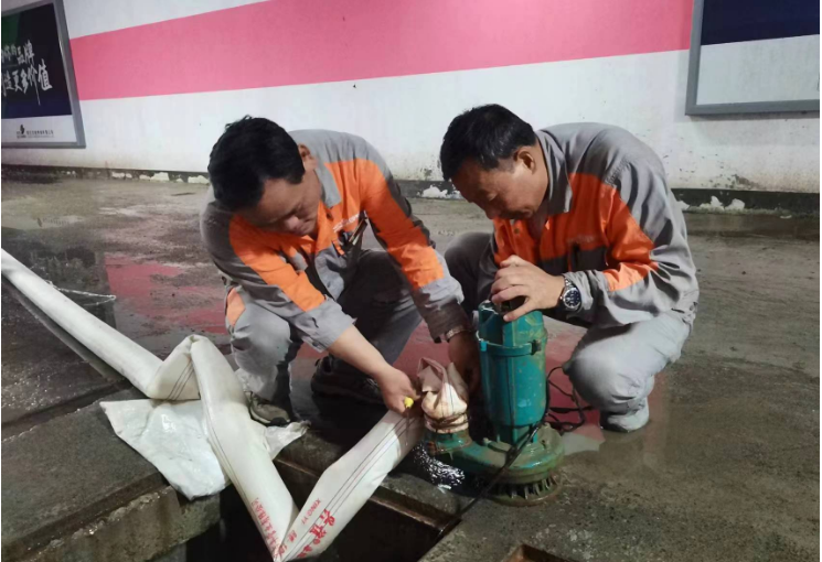 高鐵公司及時應(yīng)對防汛IV級,第一時間組織物業(yè)保安人員開展易積水區(qū)域的巡邏,夜間出動工程維修人員、出動排水設(shè)備6臺、打開集水井80余個,配電房排水5間。工程維修工冒雨檢查電梯、集水井、配電室、管廊等重點部位。綜合客運樞紐物業(yè)提前準(zhǔn)備了4臺抽水設(shè)施,工程維修人員協(xié)同夜間執(zhí)勤保安堅守崗位,持續(xù)排水8個小時,為樞紐安全運轉(zhuǎn)保駕護(hù)航。