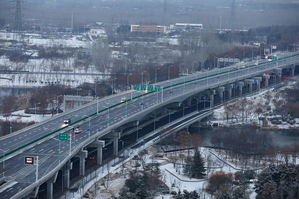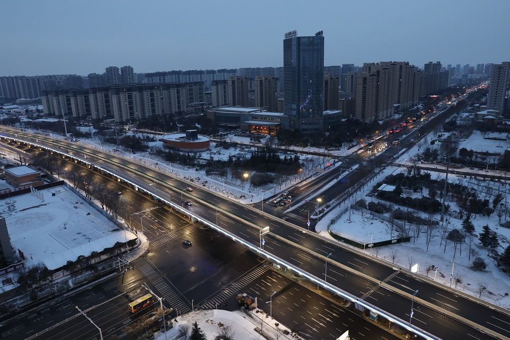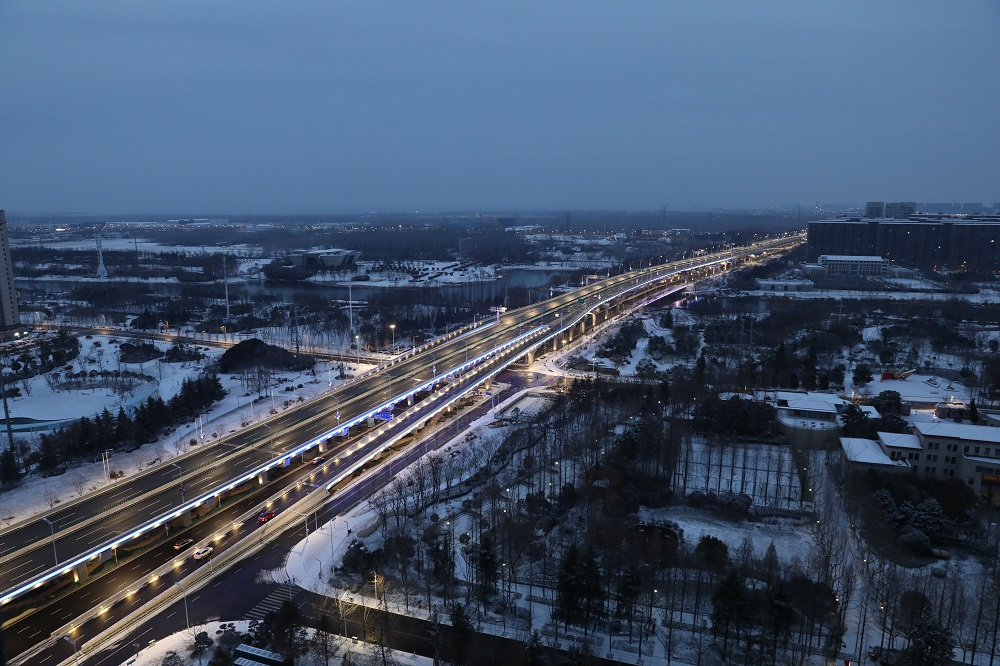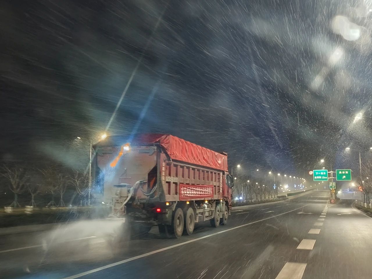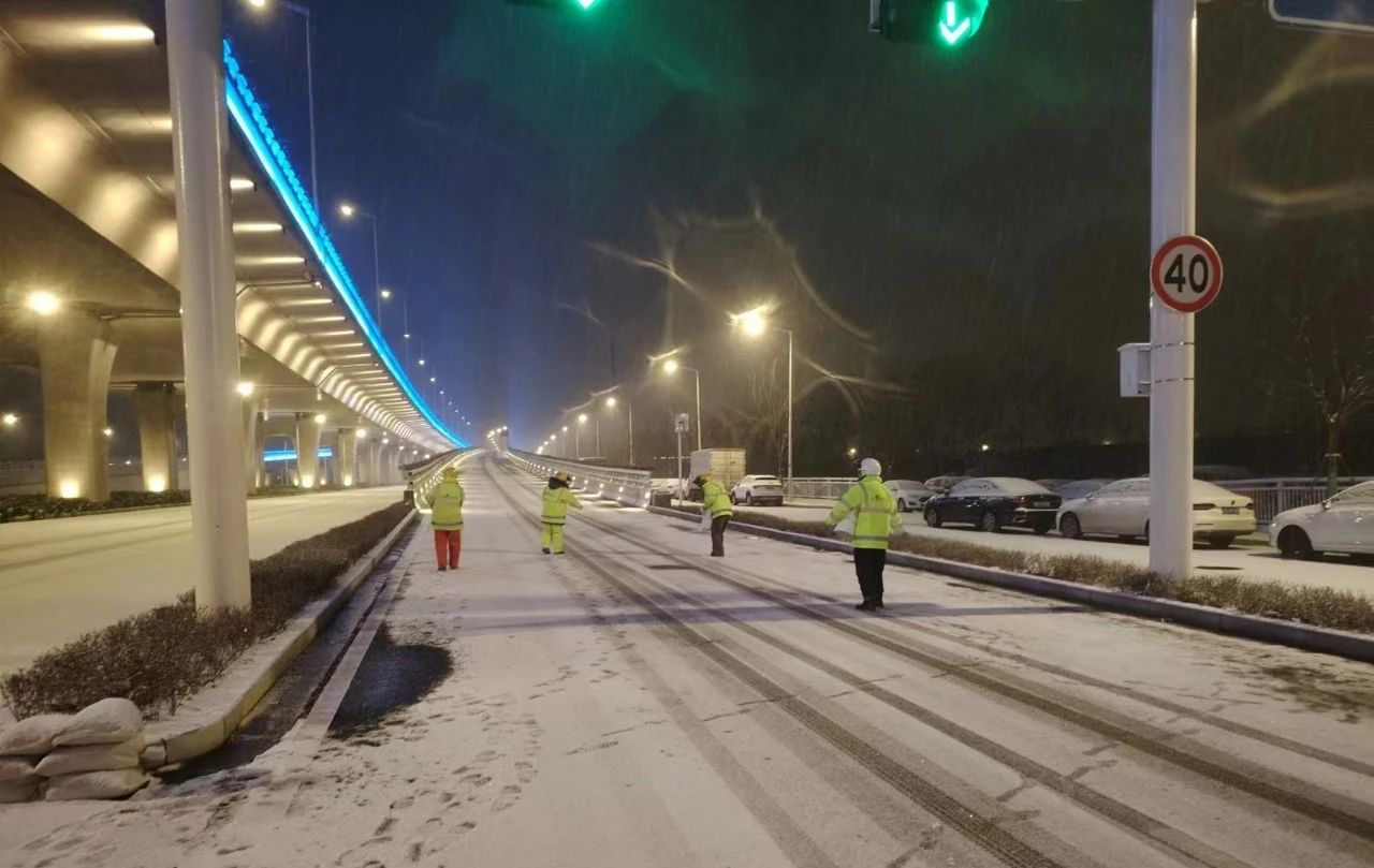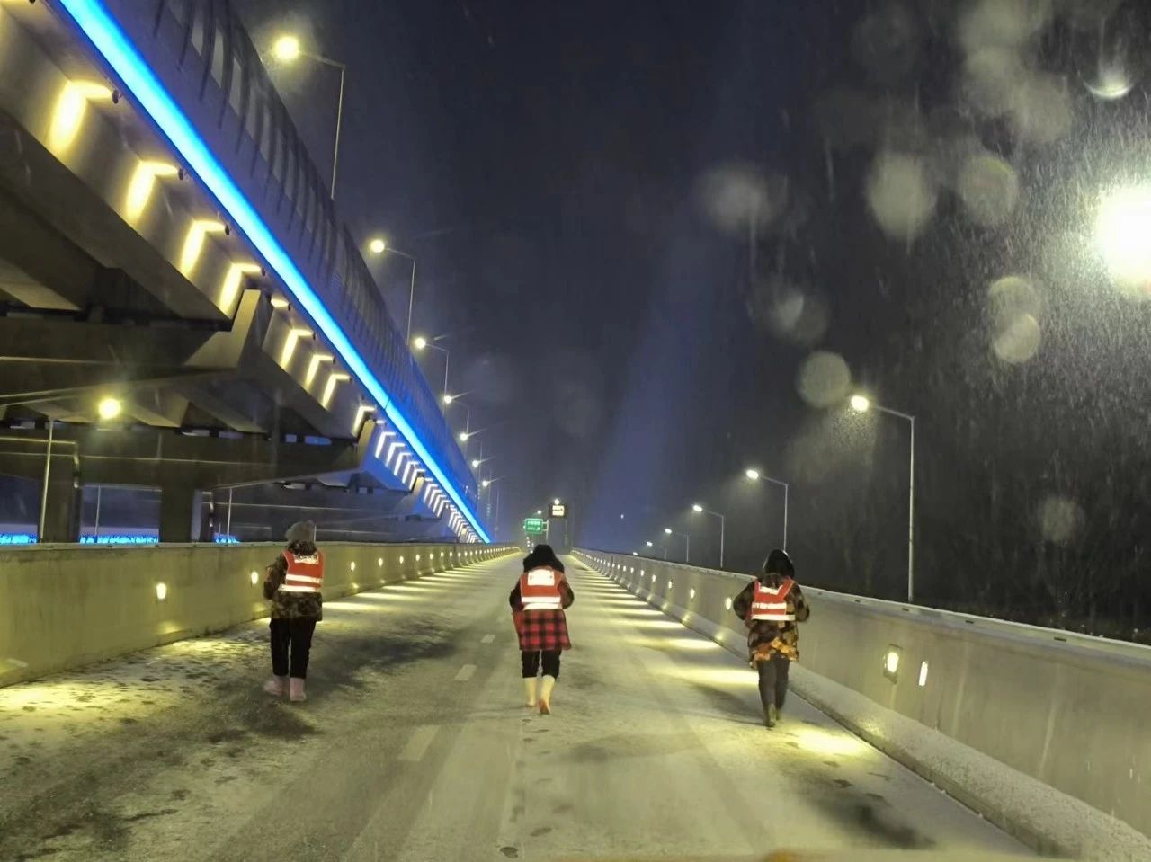2月1日晚,雪勢漸大市區快速路路面出現積雪、結冰情況為了城市的正常有序他們在風雪中執守