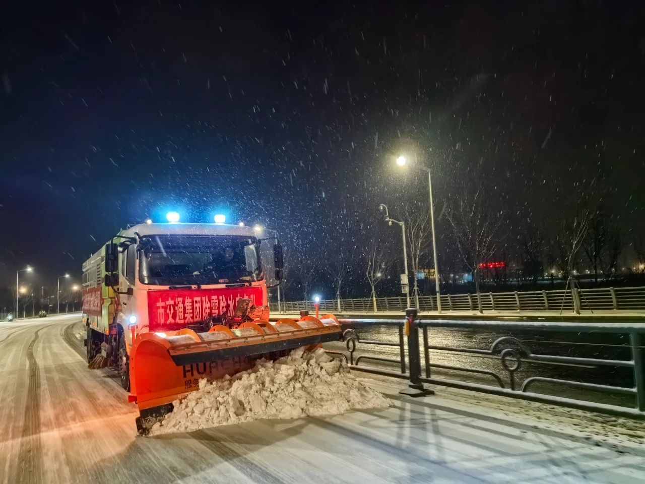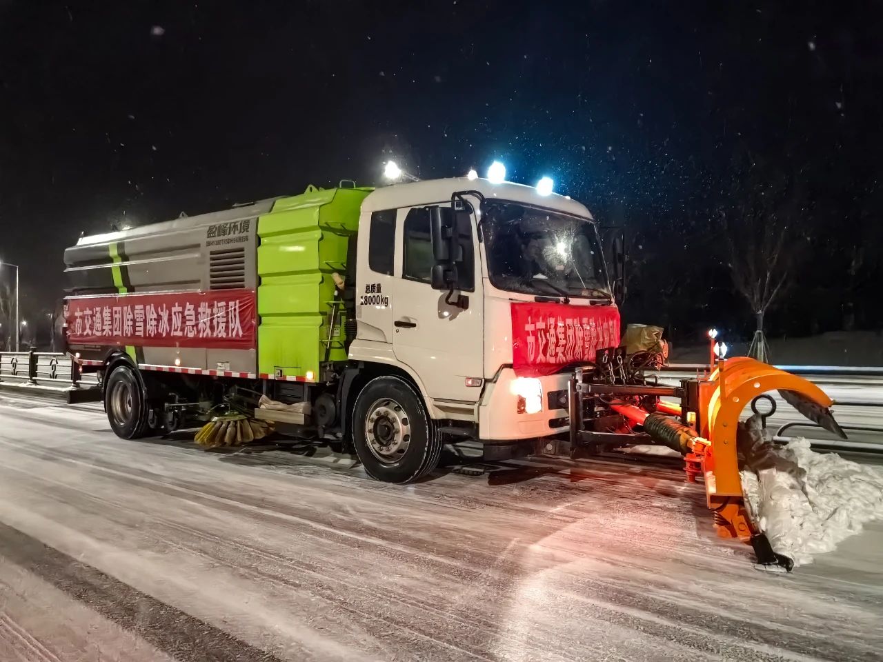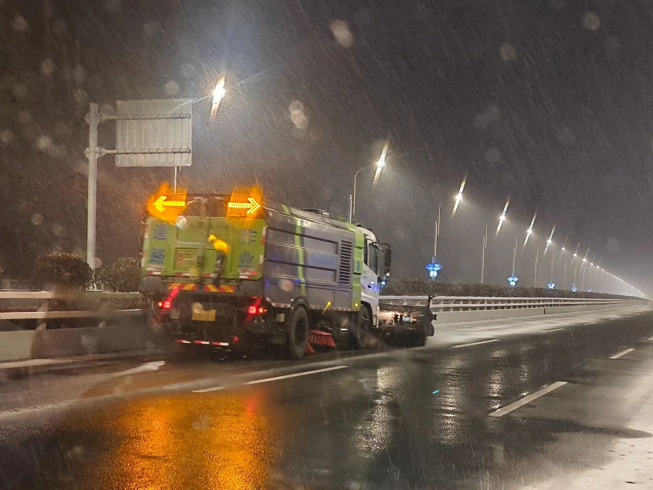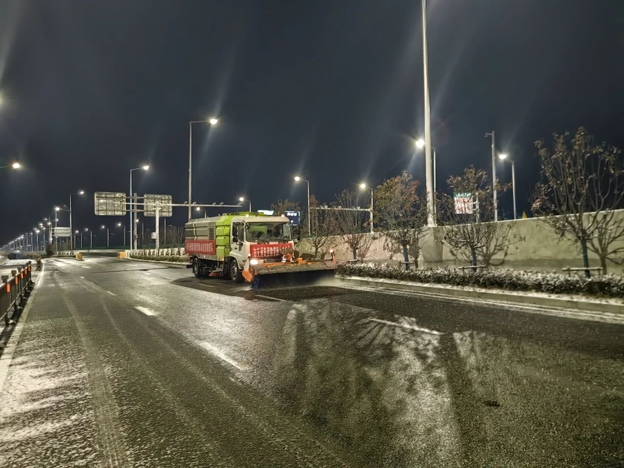 截至今早7點集團共出動除雪融冰應急保障人員120余名滾雪車、鏟雪車、巡查車融雪劑撒布機等各種掃雪機械28臺共消耗融雪劑約170余噸