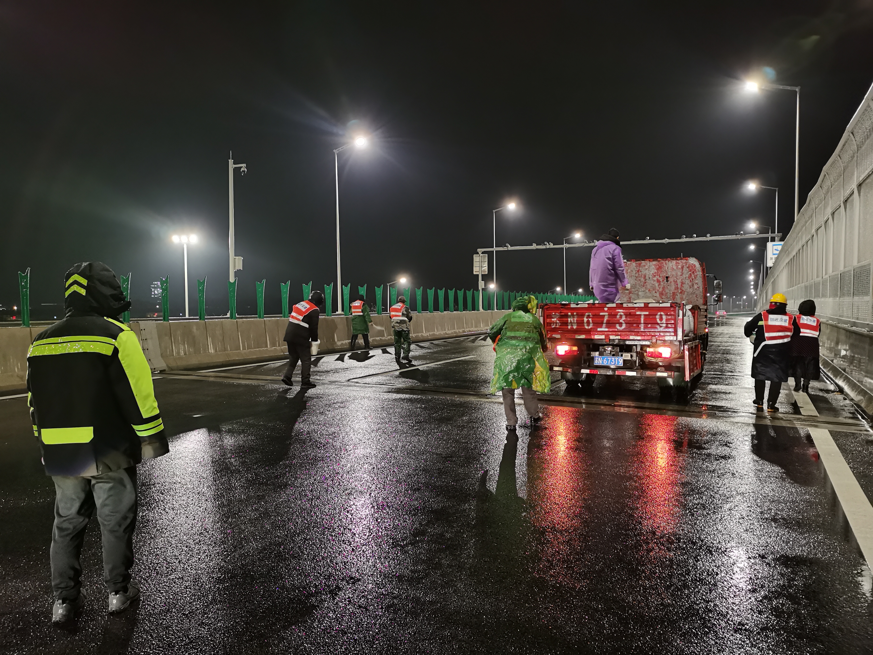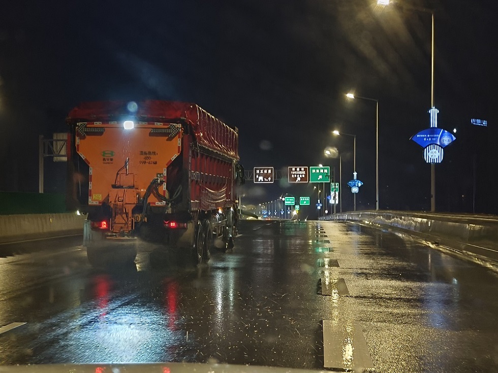 宿遷交建立即啟動雨雪冰凍天氣應急預案,出動機械70余輛、人員180人。針對管養道路不同路況特點制定對應處置方案,第一時間對主要路段進行預防性融冰撒布處置,對結冰路段啟用熱水噴灑和滾雪涮跟掃、人工輔助散鹽的措施,積極組織人員對道路進行破冰除障,確保車輛進出安全。同時,對道路標志、路燈等設施進行檢修和維護,提高夜間行車可見性和安全性。