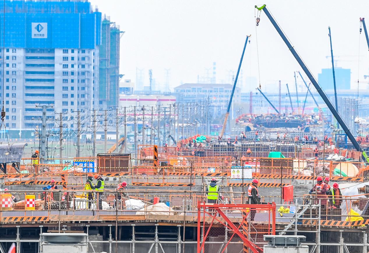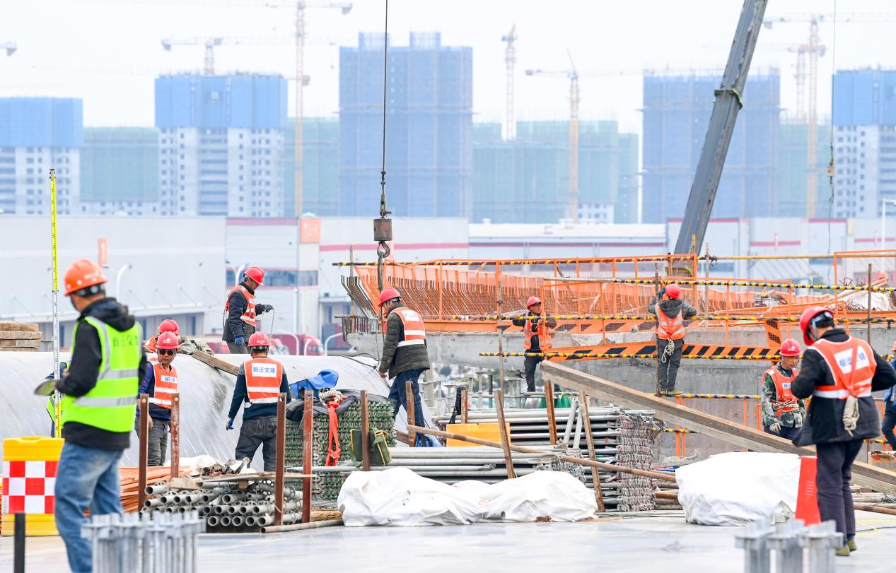 3月13日,在宿遷市酒都路(原張家港大道一期)快速化改造工程現(xiàn)場(chǎng),塔吊林立、機(jī)械轟鳴,工人正在緊張施工。架設(shè)腳手架、墩柱澆筑、鋼筋綁扎、混凝土澆筑作業(yè)交替進(jìn)行,到處是一派熱火朝天的景象。切割、焊接、敲打聲此起彼伏,吊車、塔吊、挖掘機(jī)、裝載機(jī)馬力全開(kāi),正在有序作業(yè)。踏著春天的腳步,來(lái)自各地的工人在宿遷奏響“春之曲”,項(xiàng)目踏春提速,步伐奮進(jìn)激昂,生動(dòng)詮釋了如何落實(shí)好高質(zhì)量發(fā)展、構(gòu)建好新的發(fā)展格局這一時(shí)代答卷。